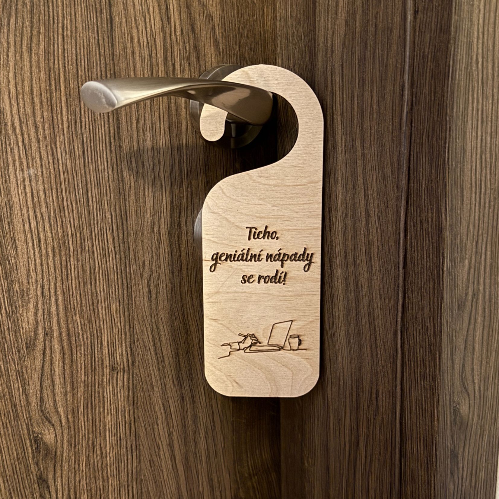Tento humorný závěs na kliku je nejen praktickým doplňkem, ale také stylovým prvkem, který dodá vašemu prostoru nádech originality a zábavy. Nechte se unést jeho jednoduchostí, účelností a veselým designem, který vám pomůže udržet si klid a soustředění v náročných pracovních dnech.