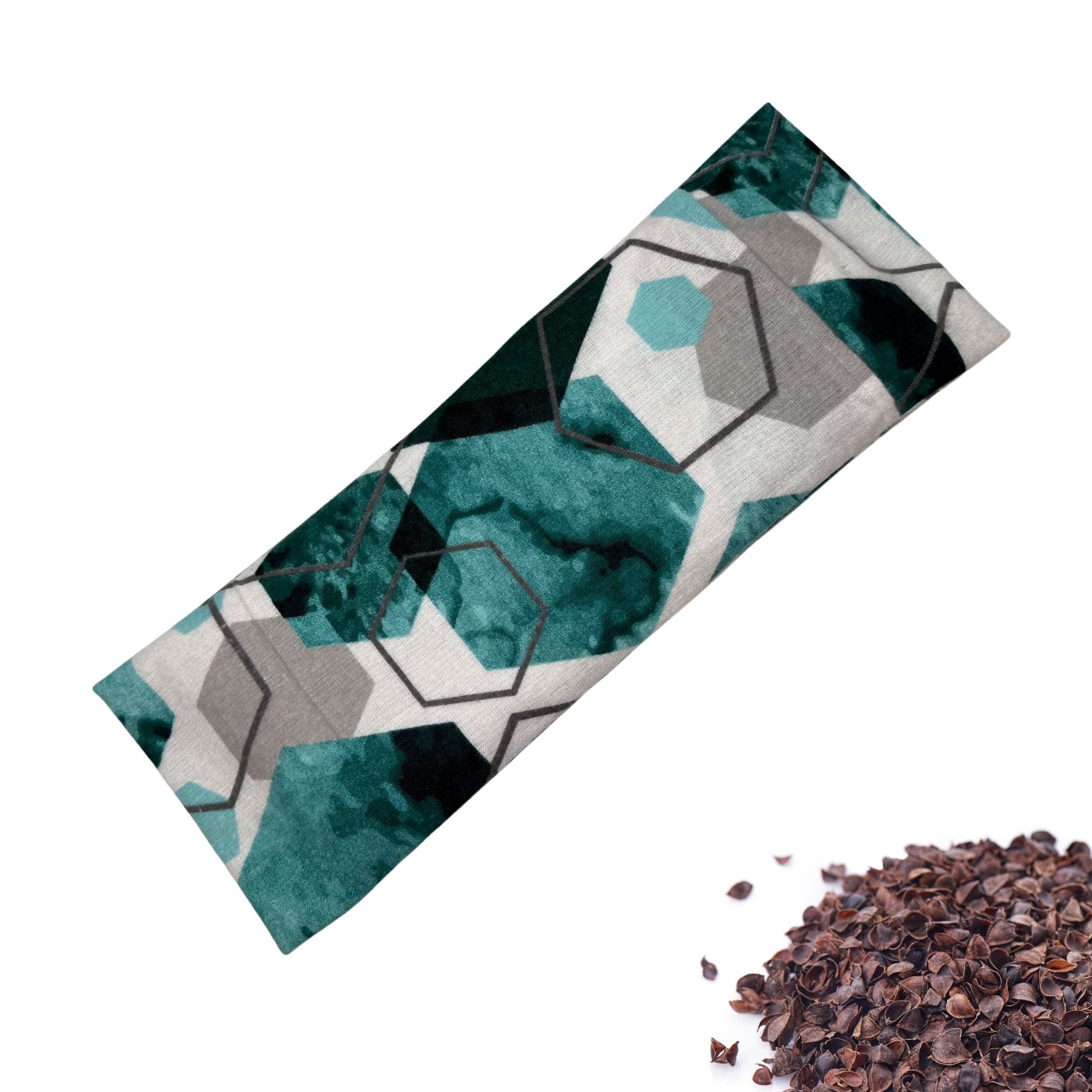 Nahřívací polštářek s pohankou - geometrické tvary zelený