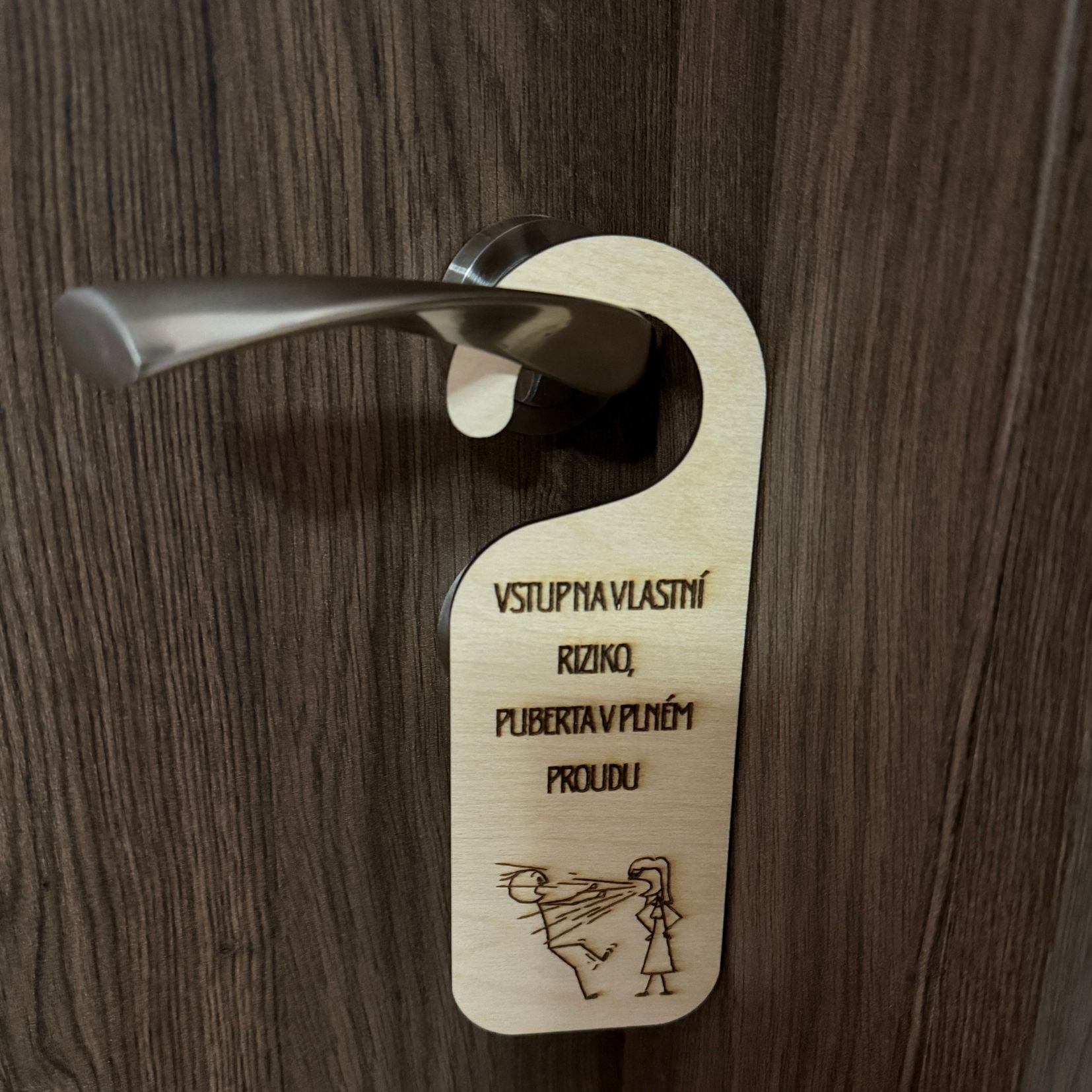 Jedinečné závěsy na kliku ze dřeva, které jsou speciálně navrženy pro děti a puberťáky. Tyto závěsy kombinují humor s funkčností a jsou ideálním doplňkem do každého dětského pokoje nebo studentského bytu.